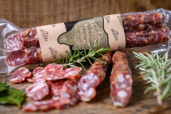 The Istrian sausage is a preserved dry-cured meat product derived from bulk minced pork and seasoned with solid pork fat, sea salt, pepper and garlic cooked in Istrian Malvasia. After a month of drying, it becomes a premium culinary delicacy rich in flavour and aroma.